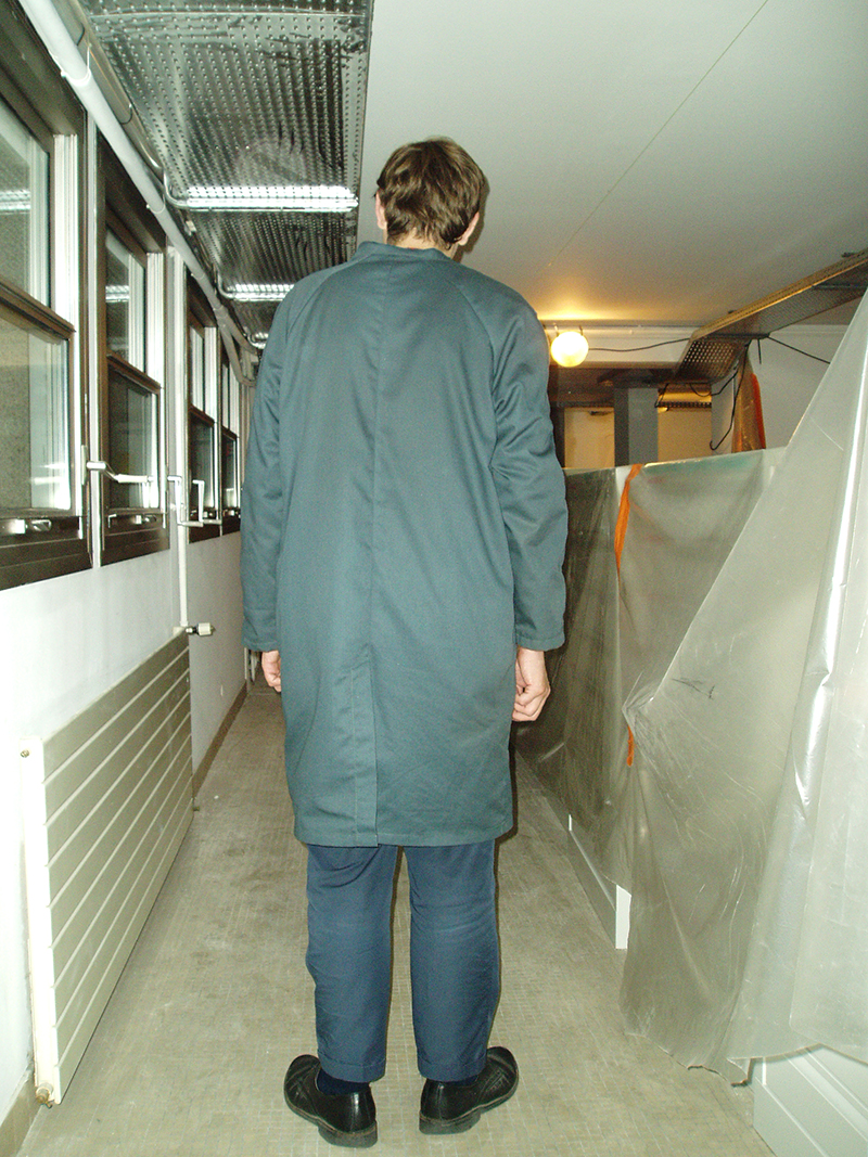 La cloison s’adosse à ces enjeux de déplacements et d’invention d’espaces successifs en impliquant le corps des protagonistes en passant d’un côté et de l’autre de la limite. Chaque semaine je photographie de dos, les acteurs du chantier regardant l'évolution de celui-ci et de leur espace de travail. Une mise en situation des personnes qui se mettent le temps du protocole, à distance et nous indiquent par la position de leur corps leur "état" vis à vis de ces conditions particulières de travail.