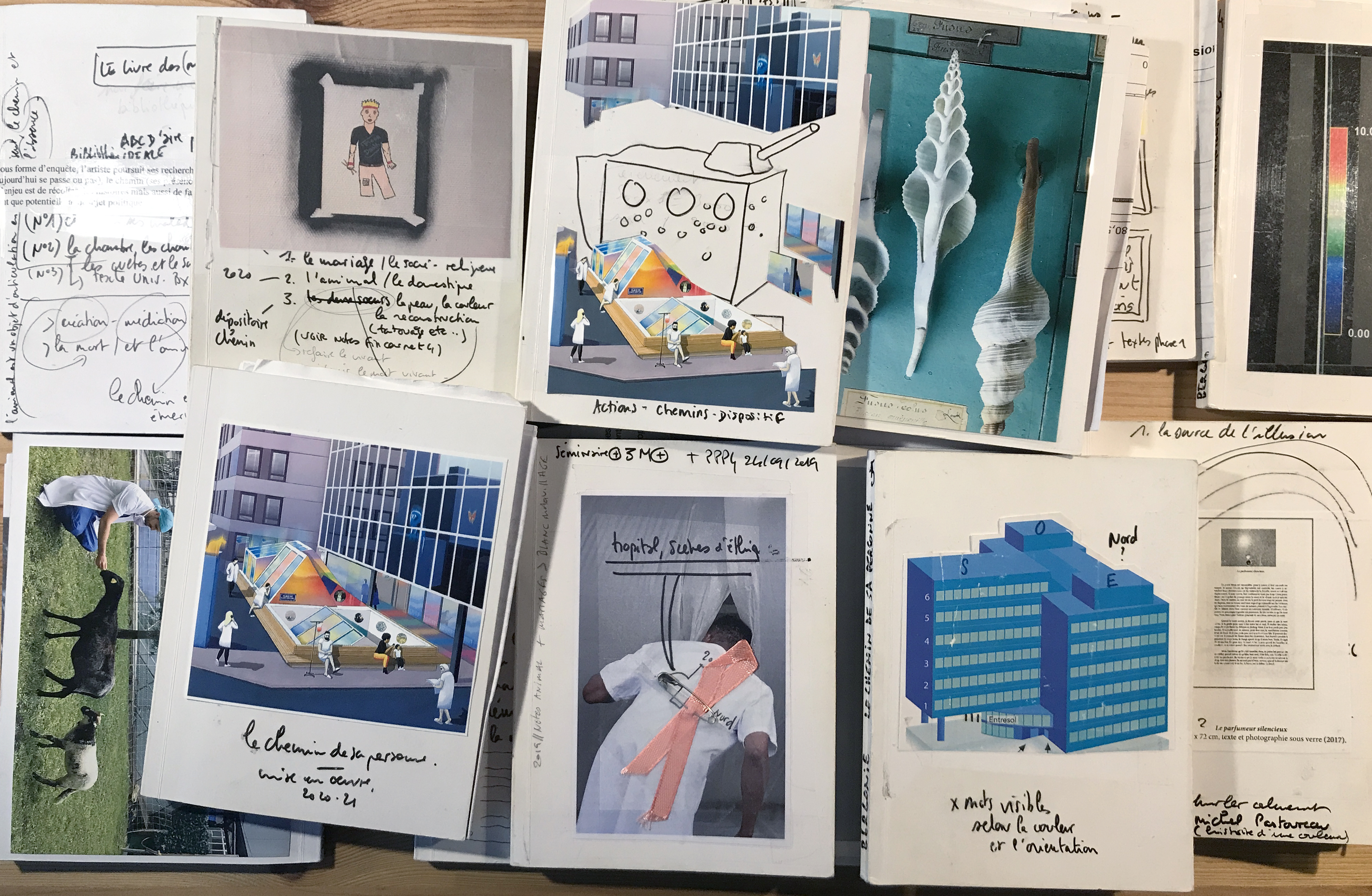 S’appuyant sur l’expérience d’une résidence artistique de quatre années au sein de l’institution hospitalière de Bergogné à Bordeaux, cet article interroge les effets d’une mise en espace des mots dans l’espace public hospitalier et par la pratique artistique. Cette dernière vise à une agitation de l’espace social par des images et des mots et fonctionne comme une expérience partagée avec les acteurs des institutions dans lesquels j’interviens. Ainsi, là où l’œuvre est un dispositif inclusif et coopératif, la mise en récit du processus artistique est un biais pour penser ma posture d’artiste dans la communauté hospitalière. La dimension non-fictionnel de ces récits permet en effet de coller au plus près des évènements liés à ma présence et aux interactions avec les « acteurs hospitaliers ».